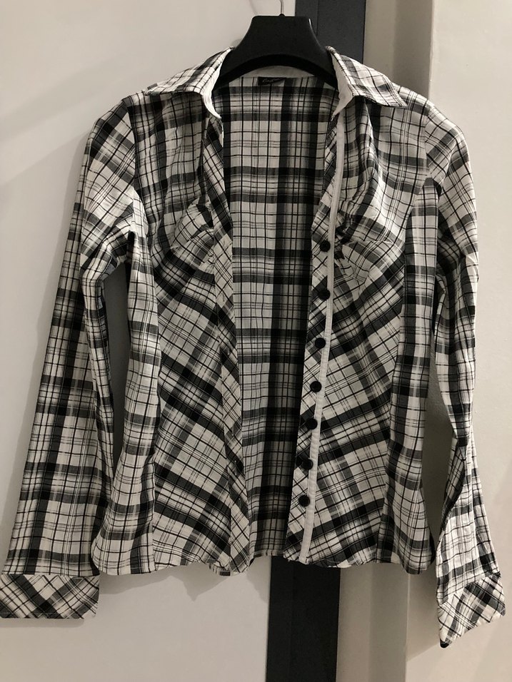 Gri ekose desenli kadın gömlek, uzun kollu ve çıtçıtlıdır. Normal kesim ve tekstil kumaştan yapılmıştır, günlük rahat kullanım için uygundur.