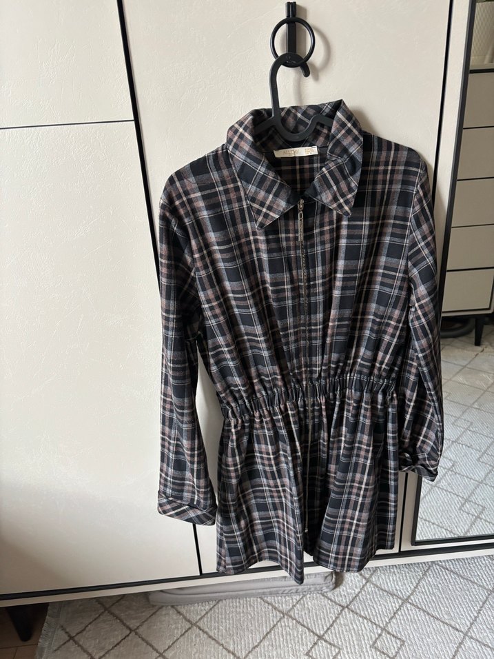 Gri ekose desenli, yakalı ve düğmeli uzun kollu gömlek. Nefes alan keten kumaştan, rahat ve bol kesimdir. Günlük sokak stili için uygundur.