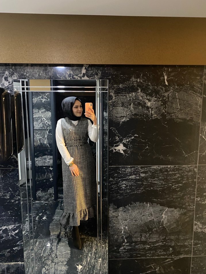 Siyah beyaz Ekose Desenli Uzun tüvit Elbise