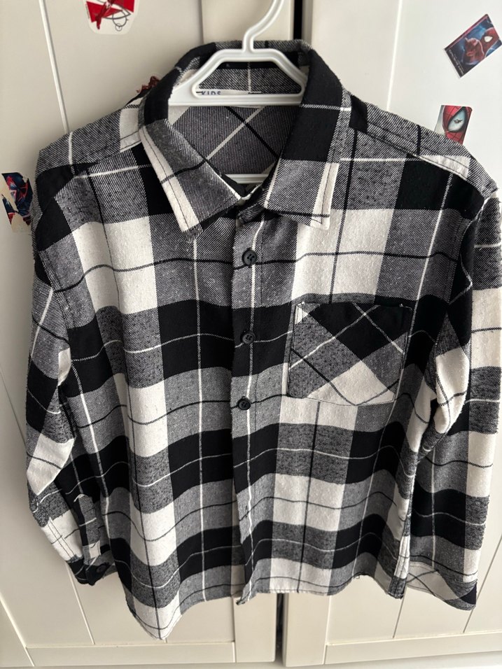 Düğmeli, uzun kollu, erkek çocuk gömleği