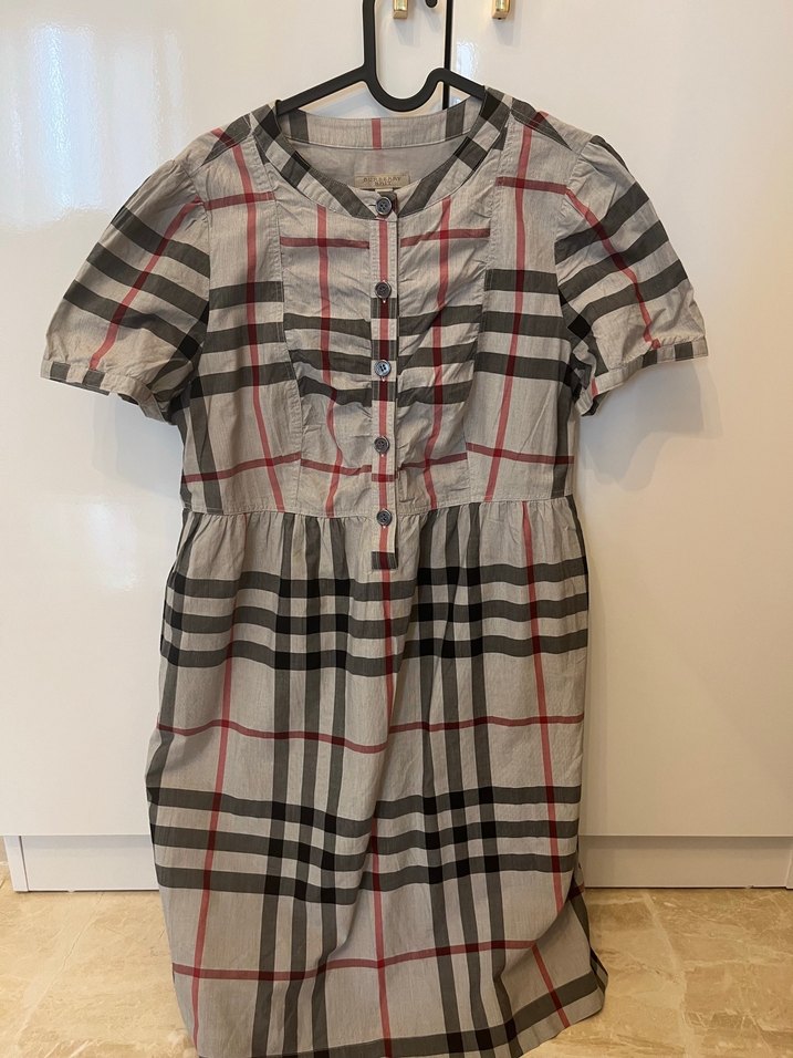Gri ekose desenli, düğmeli, kısa kollu, yuvarlak yakalı elbise .orjinaldir ufak tefek kusurları var fiyatı uygun tuttum