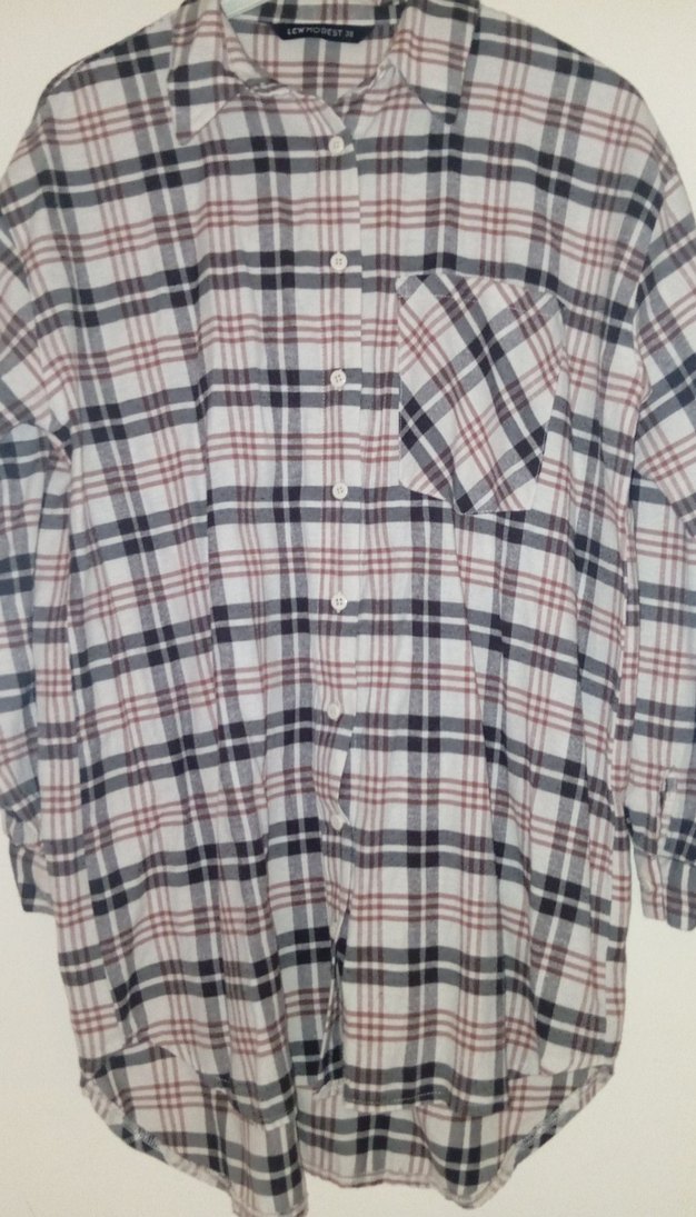 Düğmeli, uzun kollu ve bol kesim kadın gömleği. Yumuşak pamuk kumaştan, kayık yaka ve göğüs cebine sahip, günlük sokak stili için uygun.