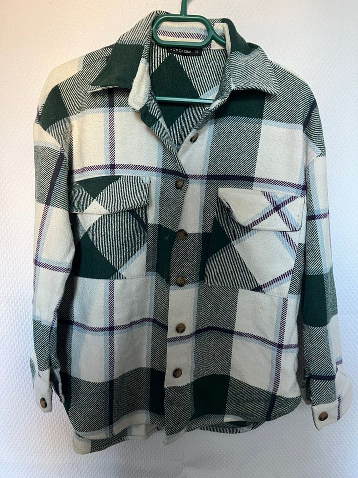 Gri Ekose Düğmeli Kadın Gömlek