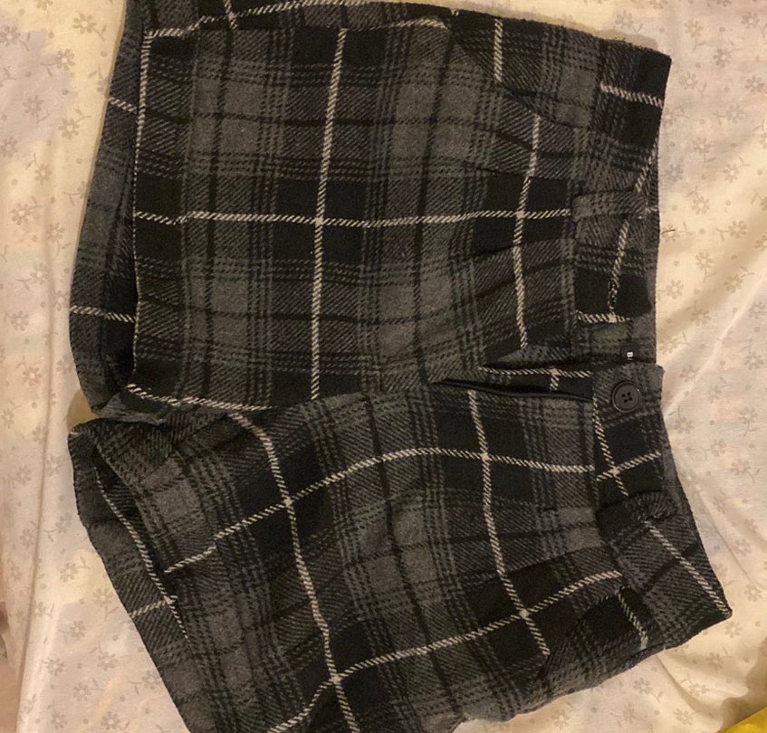 Gri ekose desenli, düğmeli, normal boy midi kadın kumaş pantolon. Rahat kesimiyle günlük kullanıma uygundur.