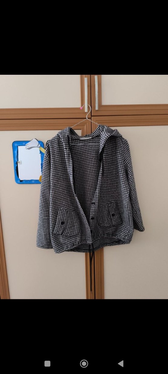 Gri tonlarda ekose desene sahip, düğmeli ve cepli, uzun kollu, rahat kesim midi ceket Yumuşak ve sıcak kumaştan üretilmiştir, günlük kullanıma uygundur.
