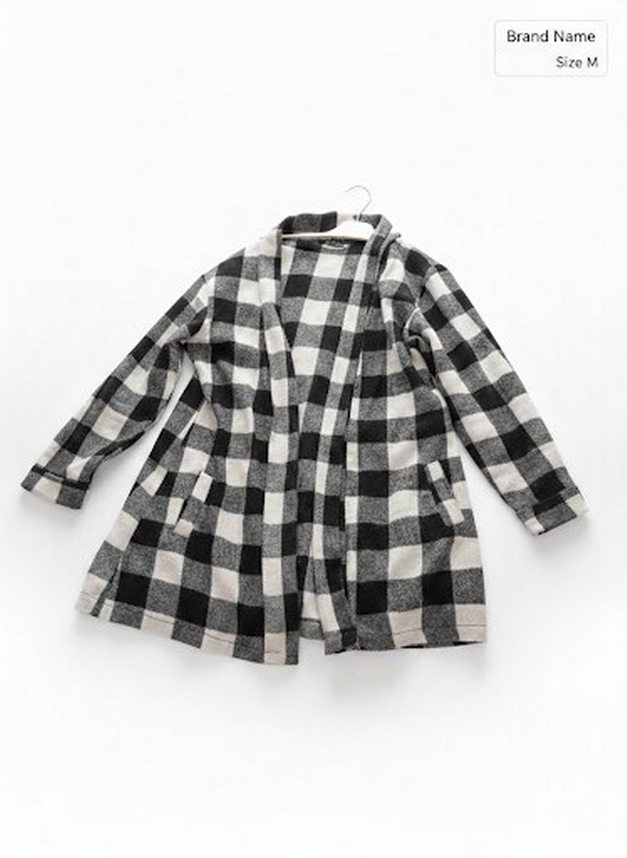 Gri Ekose Düğmeli Midi Hamile Kaban