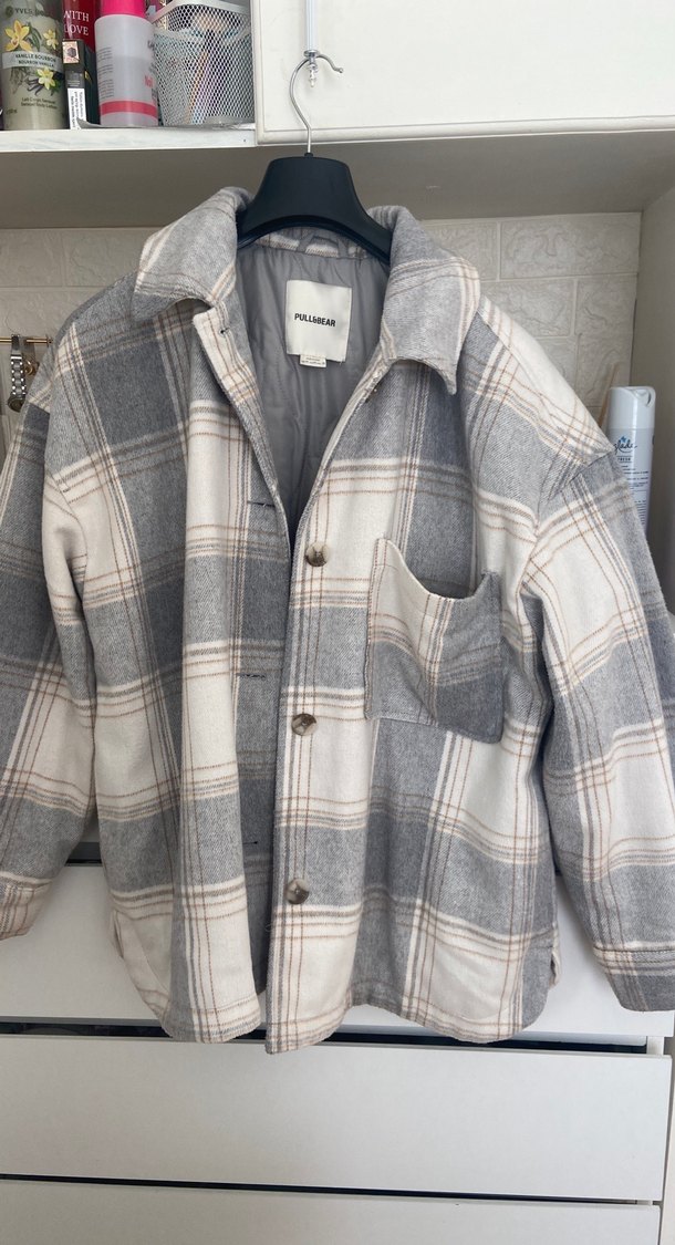 Gri ekose desenli, düğmeli, uzun kollu, pamuklu kadın gömleği. Salaş kesimi ve yakası notched lapel modelindedir. Günlük rahat kullanım için uygundur.