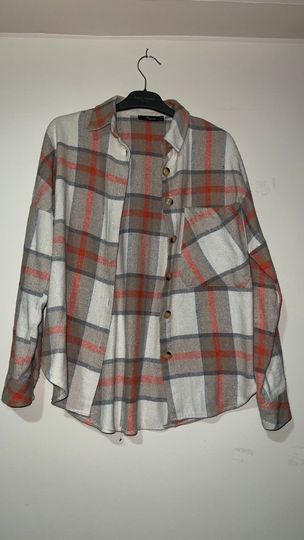 Gri ekose desenli, düğmeli, uzun kollu, normal boy kadın gömleği. Rahat kesimi ve kesik yaka detayıyla günlük kullanıma uygundur.