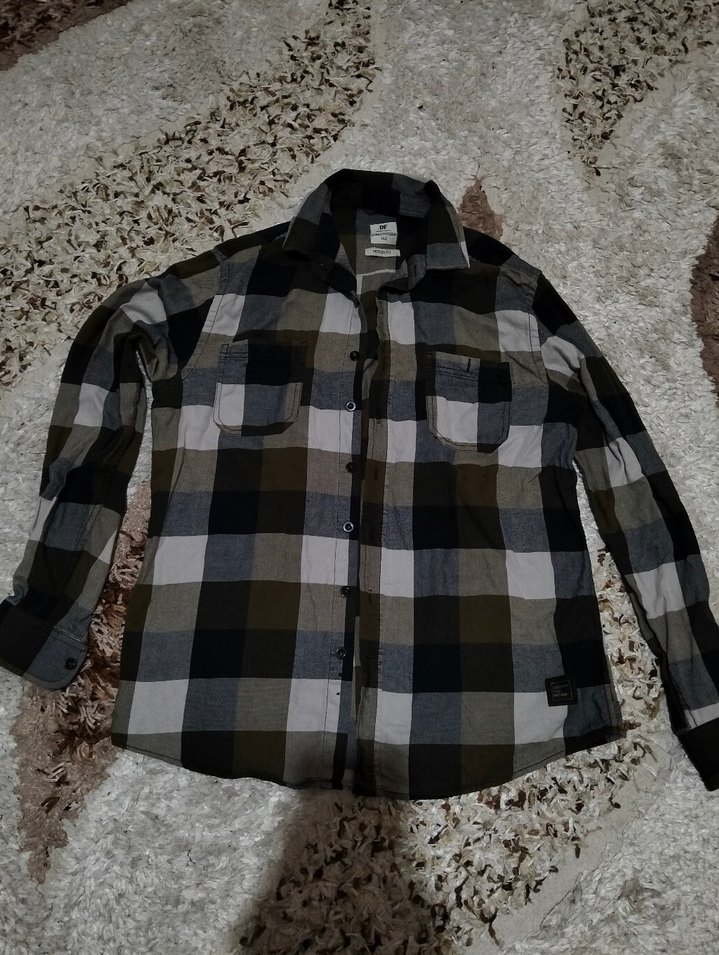 Gri tonlarda ekose desenli, düğmeli, uzun kollu ve yakalı erkek gömleği. Rahat kesimiyle günlük sokak stiline uygundur.