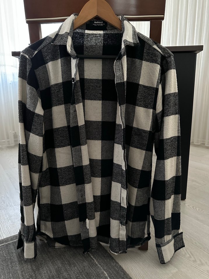 Gri tonlarında ekose desene sahip, yumuşak yün kumaştan üretilmiş, düğmeli ve uzun kollu erkek gömleği. Ölçüler Boy: 70 cm Göğüs: 50cm Kol boyu: 64 cm