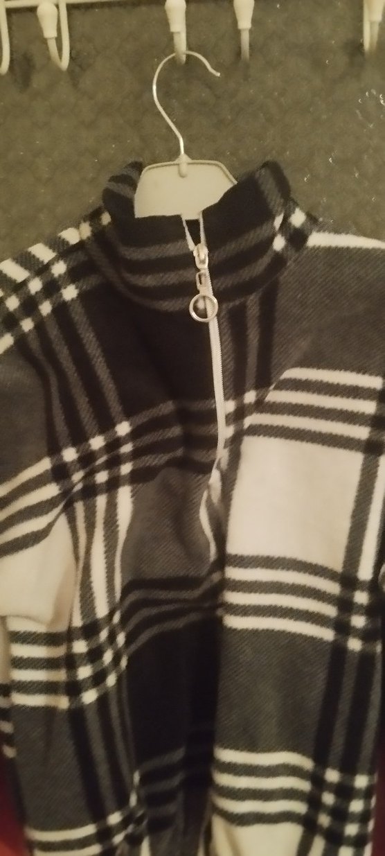 Gri ekose desenli , yüksek yakalı ve fermuarlı. Uzun kollu, bol kesim ve rahat kumaştan, günlük kullanıma uygun.