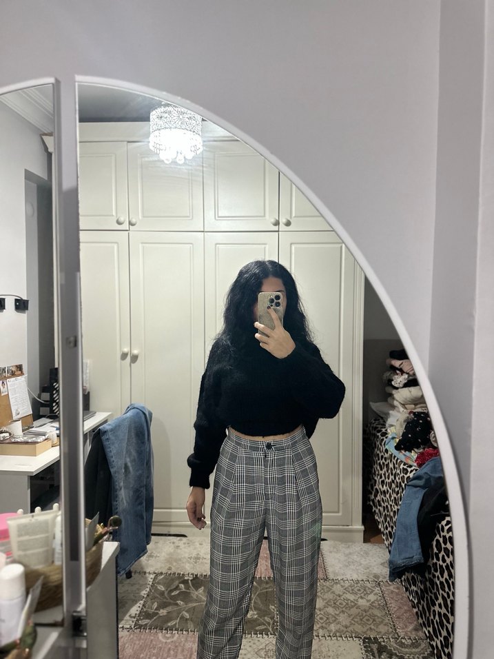 Gri Ekose Kadın Boyfriend Pantolon H&M