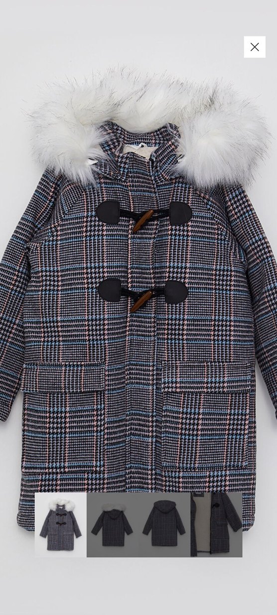 Gri Ekose Kürklü Kız Çocuk Kaban