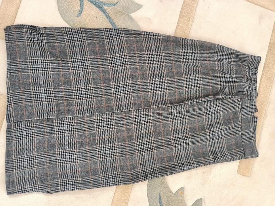 Gri ekose desenli, pileli midi kadın etek Sentetik kumaştan, normal kesim ve günlük kullanıma uygun rahat bir model.