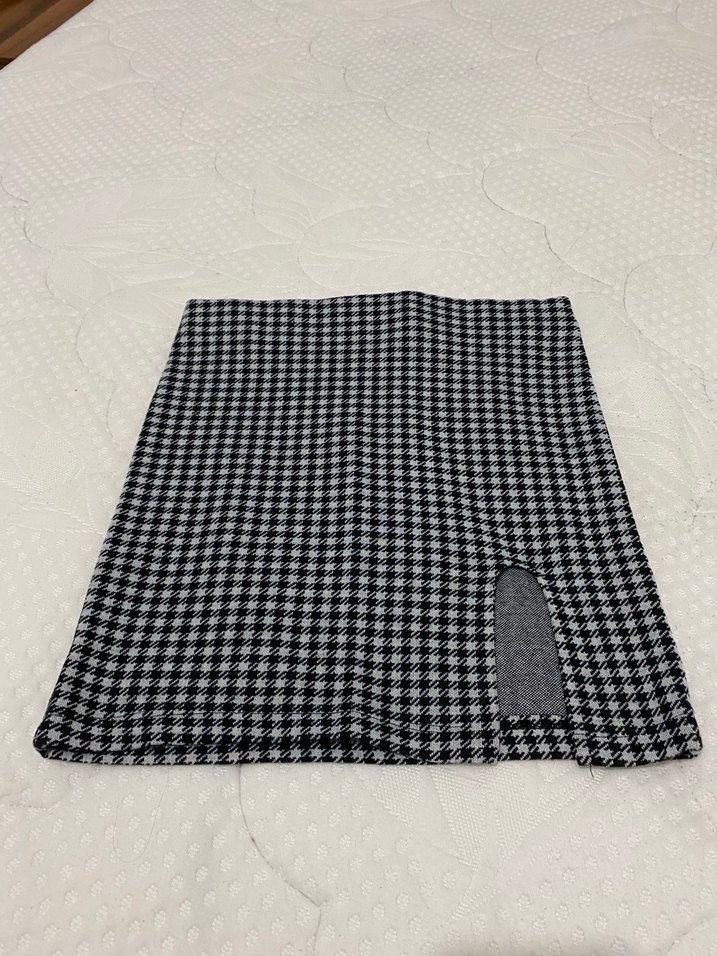 Siyah kaza ayaklı desen diz boyu ve dar kesim midi mini etek, günlük kullanıma uygun rahat bir sokak stili sunar.