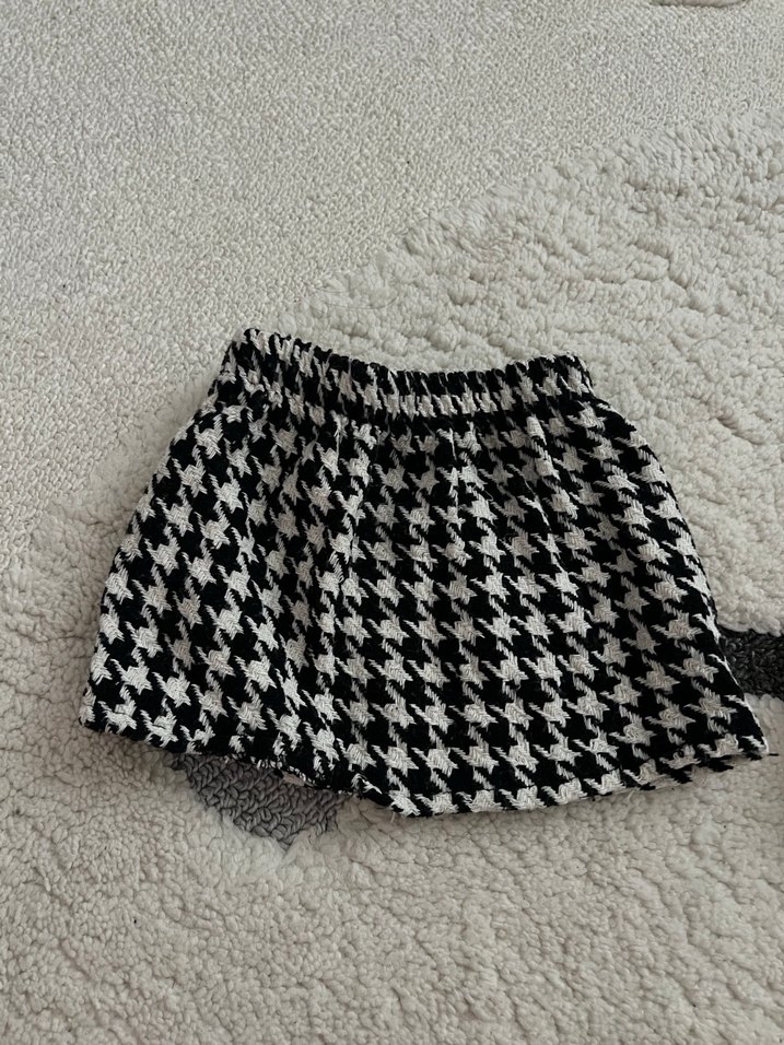 Gri ekose desenli, örgü yün kumaştan yapılmış, bol kesim kısa etek. Rahat ve sıcak tutar, 1 kez giyildi.