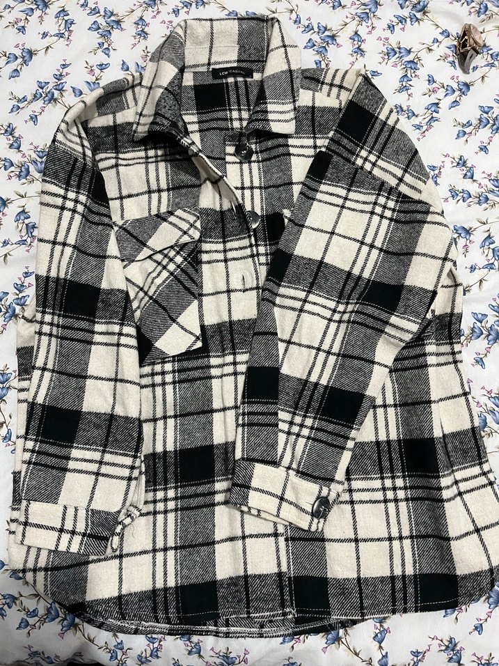 Gri ekose desenli kadın gömlek, notlu yaka ve uzun kollu olup pamuktan yapılmıştır. Rahat kesimi ve düğmeli detaylarıyla günlük kullanıma uygundur.