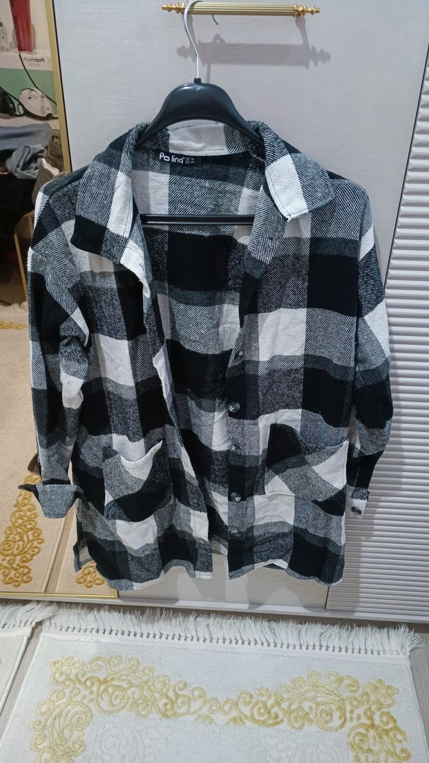 hiç sorunu yok Gri ekose desenli kadın gömlek, uzun kollu, yakalı ve pamuklu kumaştan rahat kesimdir. Düğmeli ve iki ön ceplidir, günlük sokak stiline uygundur. ✨
