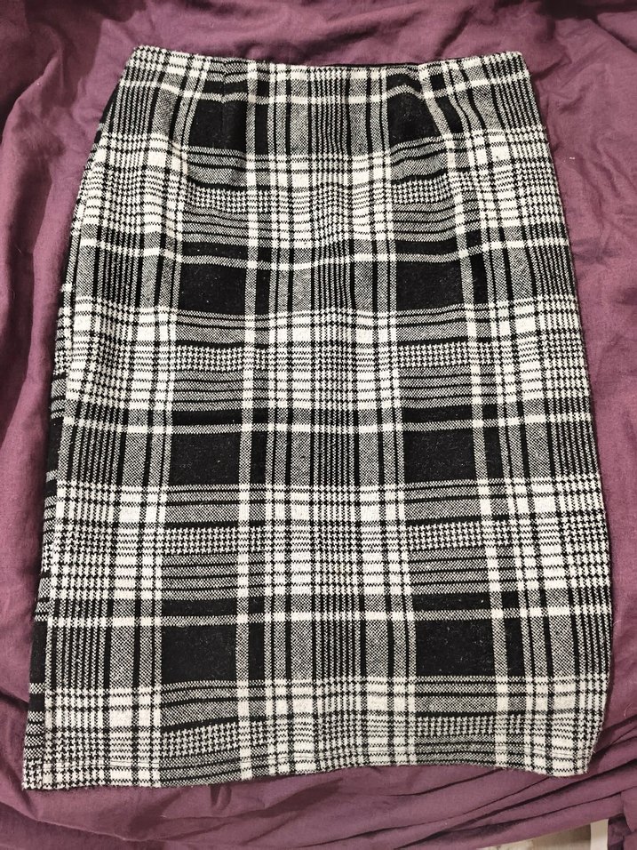 Gri ekose desenli, pilili ve sentetik kumaştan yapılmış, rahat kesimli midi etek. Günlük sokak stili için uygundur.