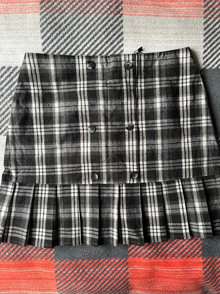 Gri ekose desenli midi etek, pilili tasarımı ve bol kesimiyle sentetik kumaştan üretilmiştir. Sokak modası ve grunge punk tarzına uygundur.