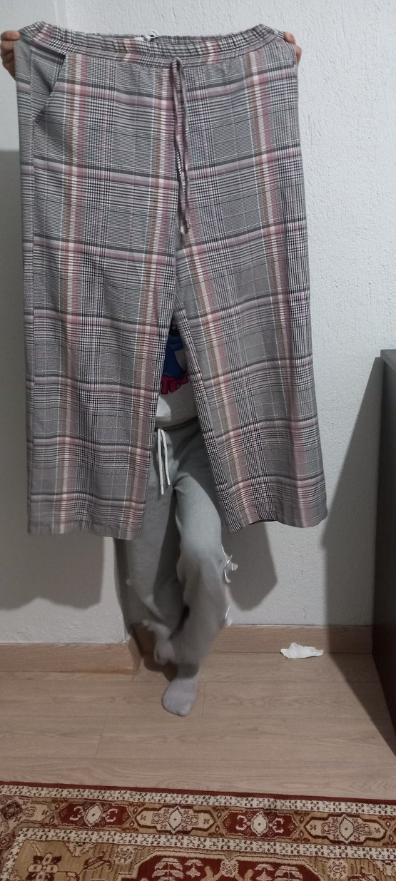 Gri Ekose Salaş Midi Kumaş Pantolon