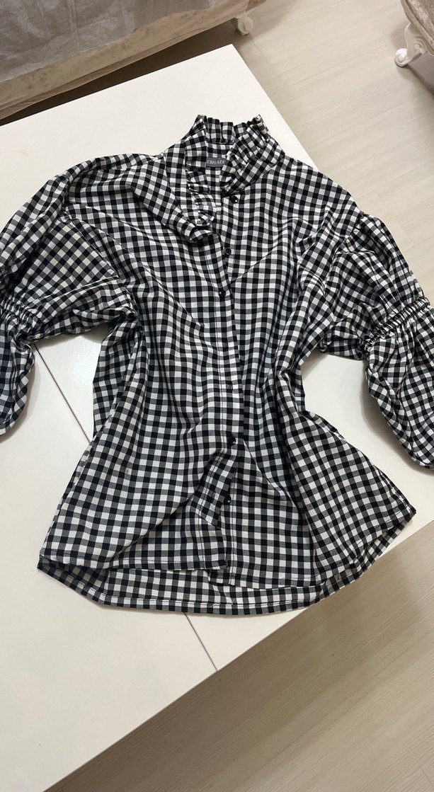 Gri ekose desenli, uzun kollu, düğmeli ve yakalı kadın gömleği. Rahat kesimi ve pamuklu kumaşıyla günlük sokak stili için uygundur.
