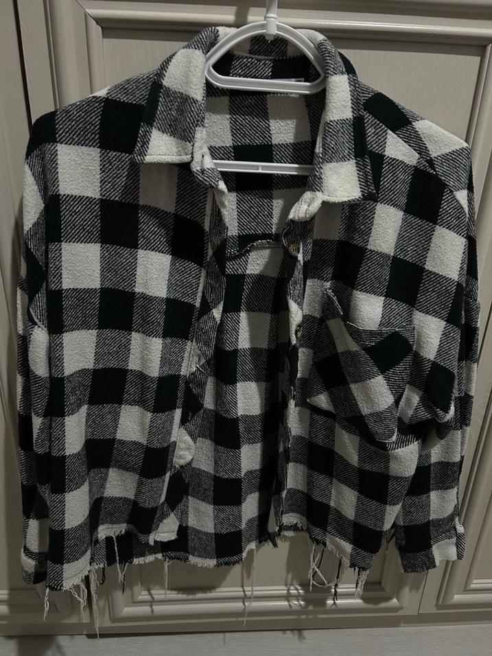 Gri ekose desenli, uzun kollu, yakalı ve salaş kesim kadın gömleği. Yumuşak tekstil malzemeden üretilmiş, düğmeli ve rahat günlük stil için uygundur.