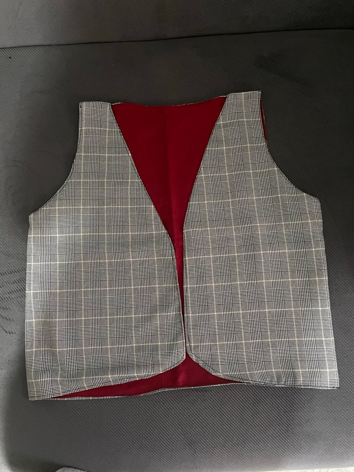 El yapımı, vintage gri ekose desenli, kırmızı astarlıyelek,regular fit ve normal boyda, günlük kullanım için uygundur.
