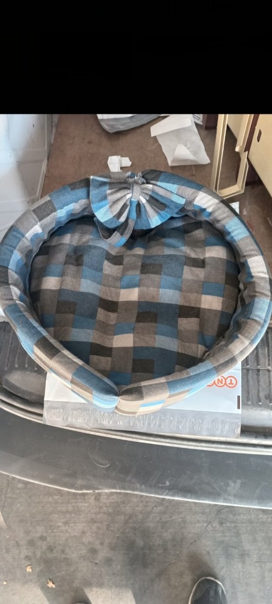Gri ve mavi ekoseli, yumuşak dolgulu bebek yatağıdır. Bebekler için rahat bir dinlenme alanı sunar. ️
