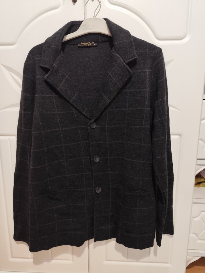 Gri ekoseli yün ceketin düğmeli, keskin yaka detayı vardır. Normal kesim ve uzun kolludur, midi boyda tasarlanmıştır.