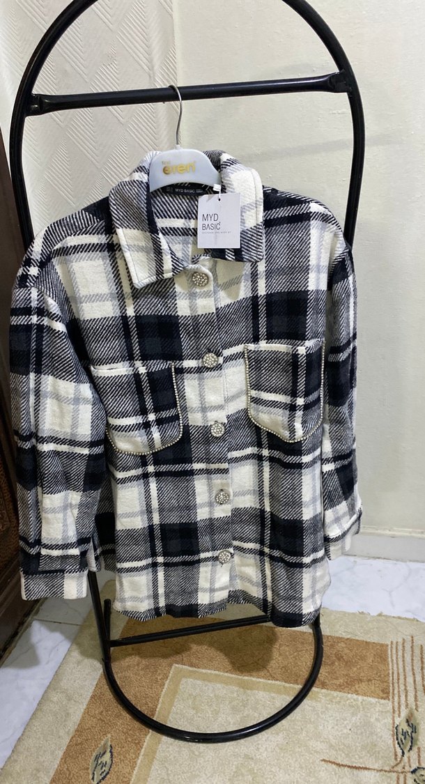 Gri Ekoseli Düğmeli Kadın Gömlek