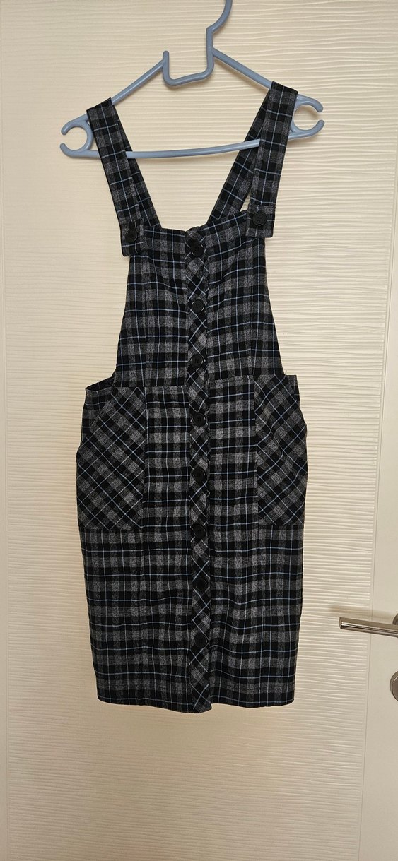 Koton 36 beden askılı, ön cepli gri ekoseli elbise.Az kullanilmistir,herhangi bir deformesi yoktur