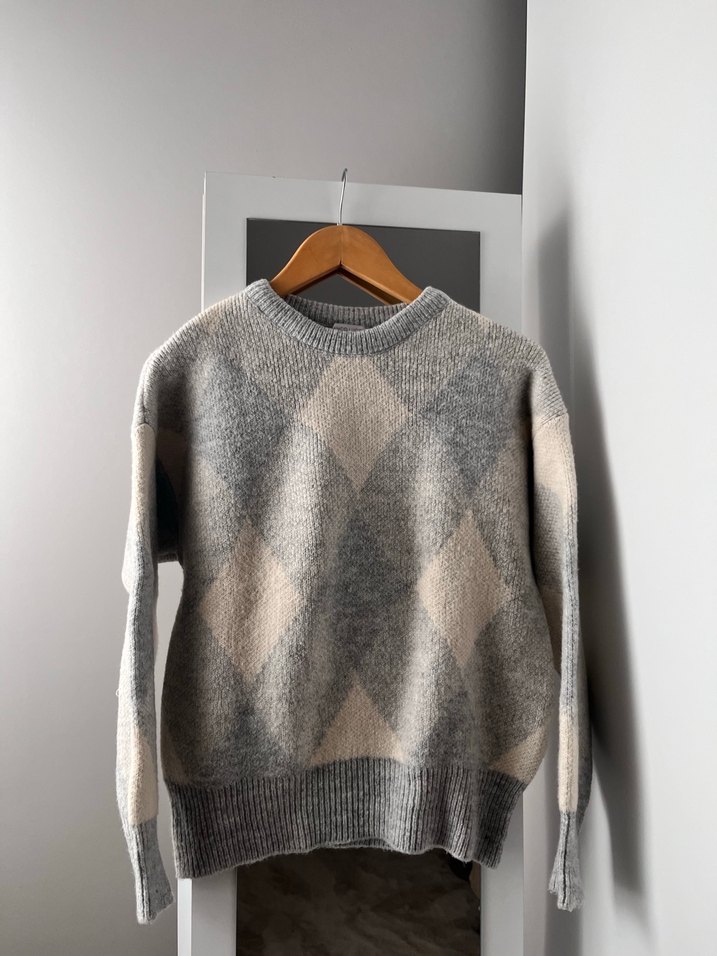 Gri renkli, ekoseli, yuvarlak yaka ve uzun kollu kazak. Rahat kesimi ve örgü dokusu sayesinde günlük kullanıma Ürün sayılı giyildi. Kalınca bi kazak. Boy:58 göğüs:54cm herhangi deformesi yok. Temiz ürün. Bir çok şekilde kpmbinlenebilecek renk be desende. #zara #kazak #pullandbear