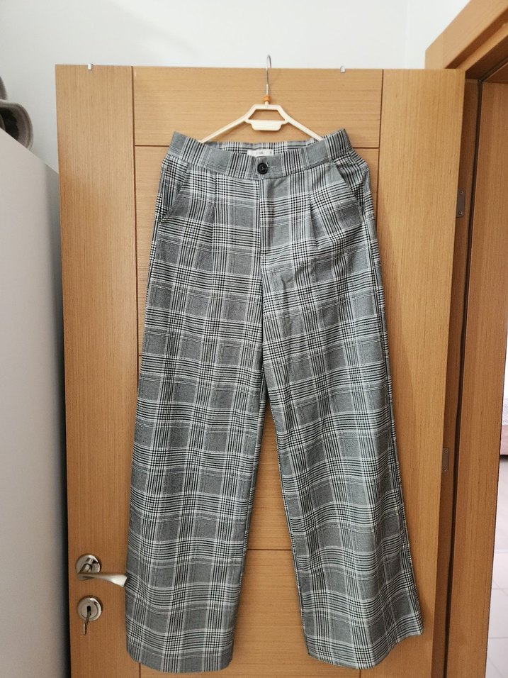 Gri Ekoseli Kadın Kumaş Pantolon