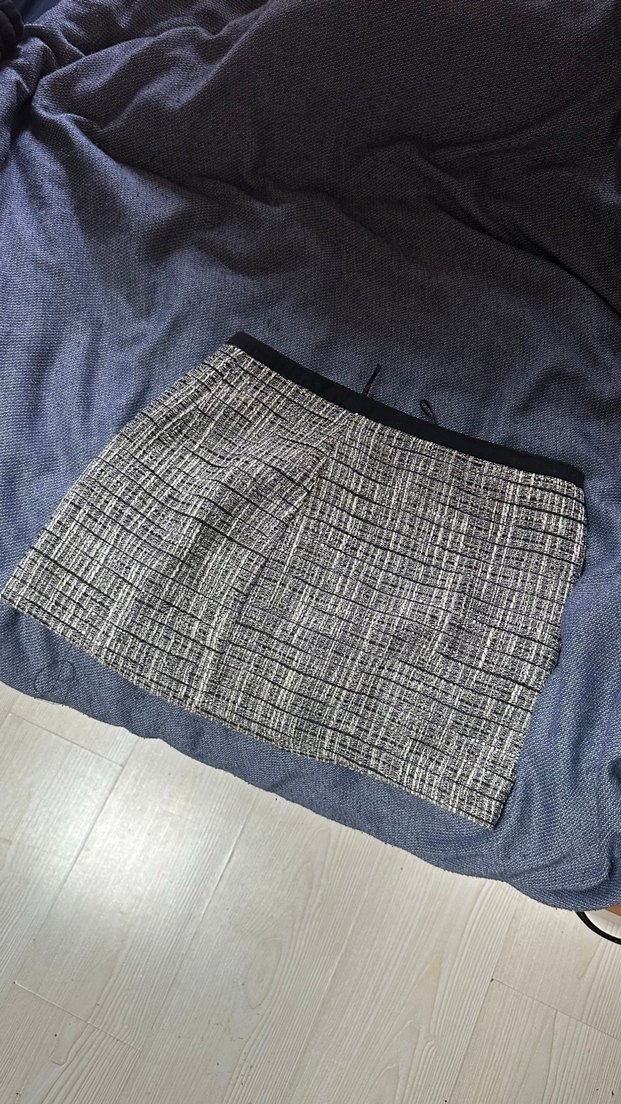 Gri ekoseli, kemerli ve bol kesim mini etek. Sentetik kumaştan üretilmiş, günlük rahat sokak stili için uygun.