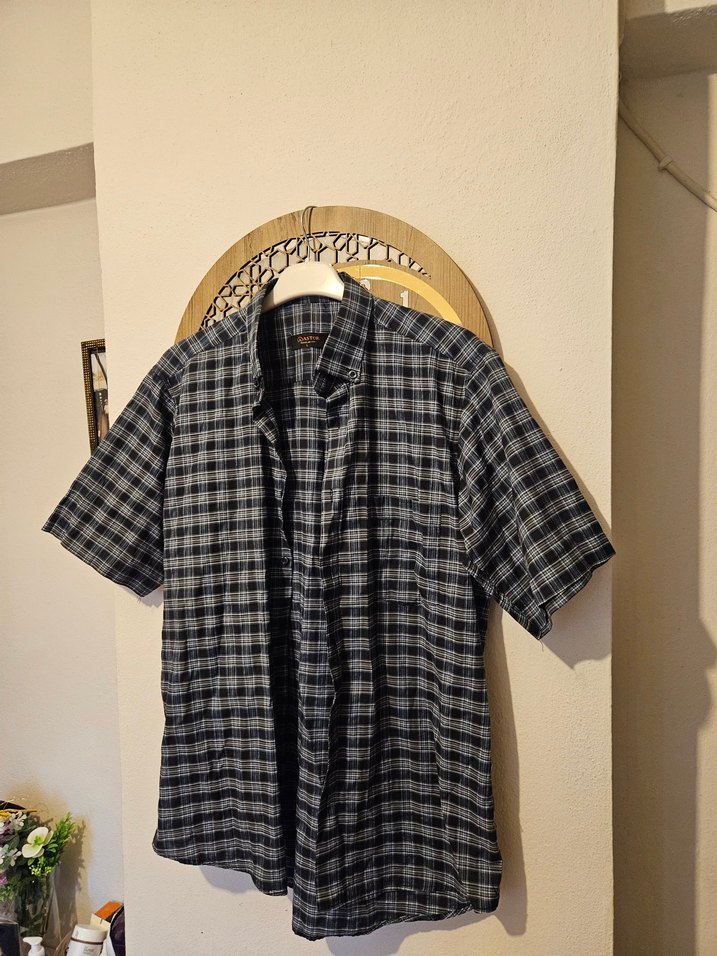 Gri ekoseli, kısa kollu, yakalı ve düğmeli erkek gömleği, rahat kesimiyle günlük sokak stili için uygundur. Boy:77 cm,Koltuk altindan en:57 cm