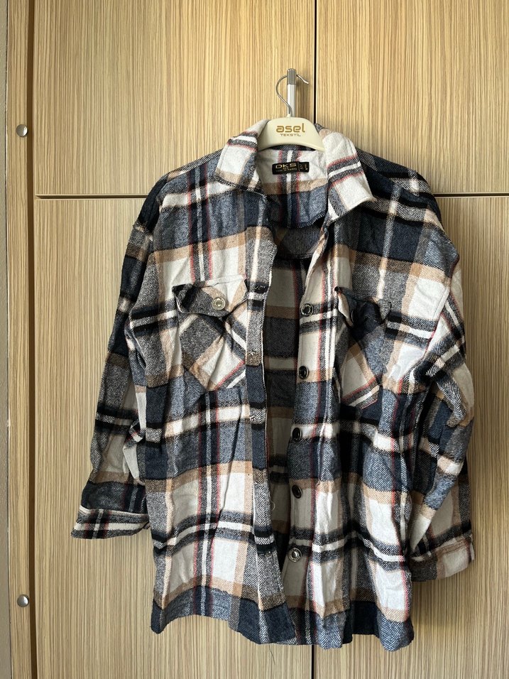 Pamuklu, düğmeli ve uzun kollu, gri ekoseli, bol kesim kadın gömlek. Notlu yaka detayına sahip, rahat ve günlük kullanım için uygun.
