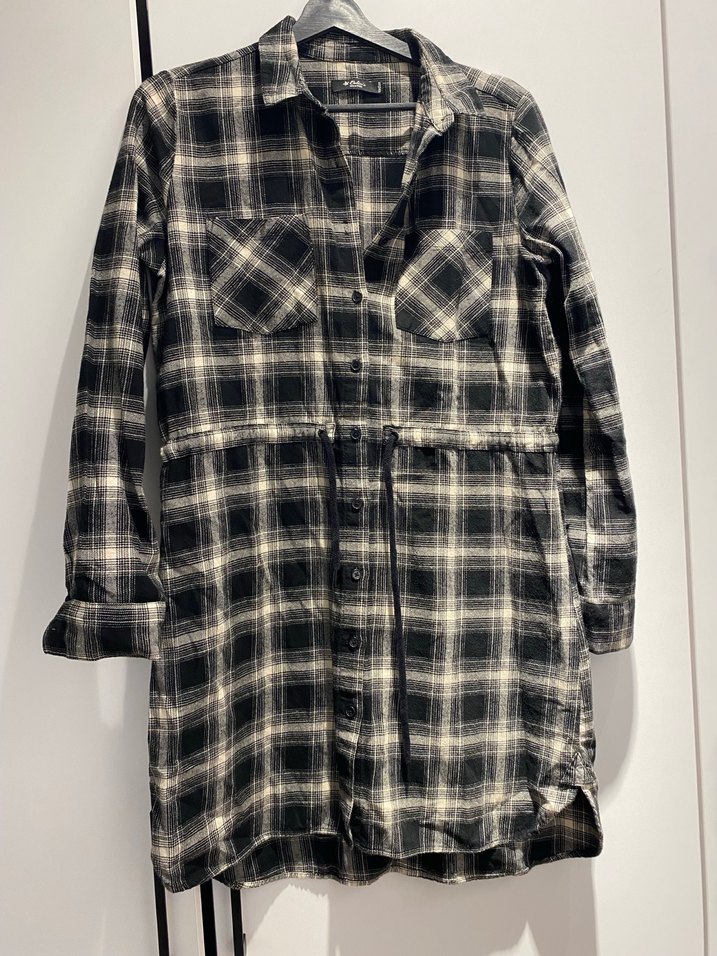 Gri Ekoseli Pamuklu Uzun Kollu Kadın Gömlek Elbise