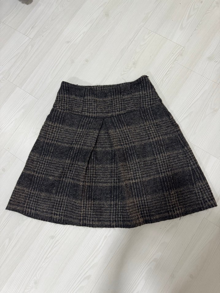 Gri ekoseli desenli, pilili ve bol kesim midi etek, yumuşak sentetik kumaştan, rahat sokak stili için uygundur.