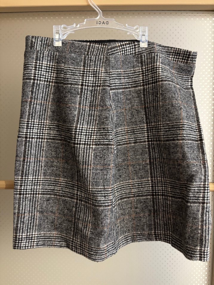Gri renkte, sentetik kumaştan yapılmış, piliseli ve ekoseli desenli, bol kesim midi uzunluğunda mini etek. Günlük kullanıma uygundur.