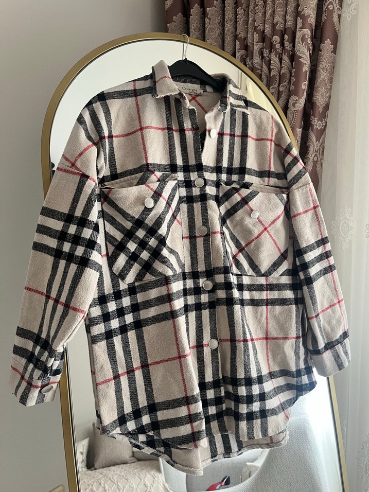 Gri ekoseli, düğmeli, uzun kollu, rahat kesim kadın gömlek. Notlu yakası ve önünde iki cep bulunur. Günlük kullanıma uygundur. ✨