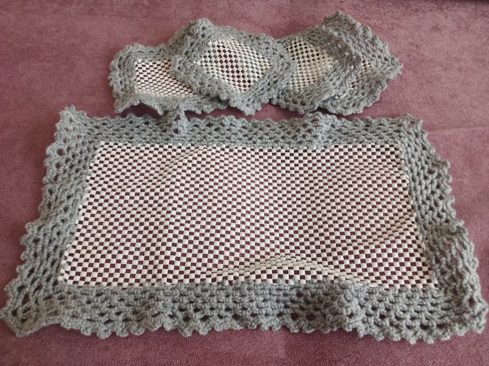 Gri El Örgüsü Tepsi Örtüsü ve Bardak Altlıkları
