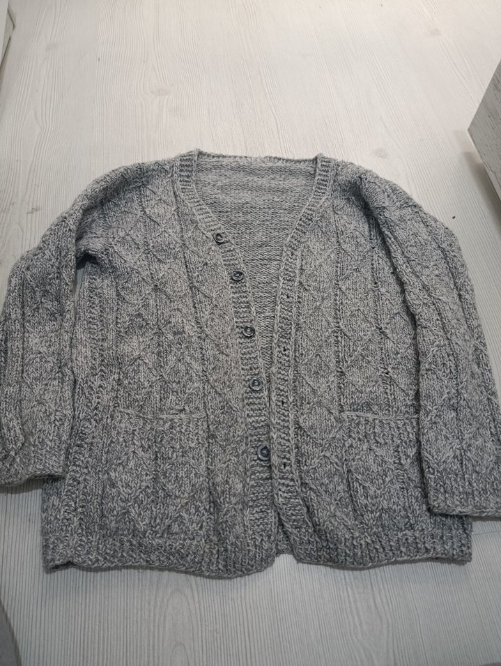 Gri renkte, uzun kollu ve yuvarlak yaka olan bu triko hırka, salaş kesimi ve örme dokusuyla günlük kullanıma uygundur.