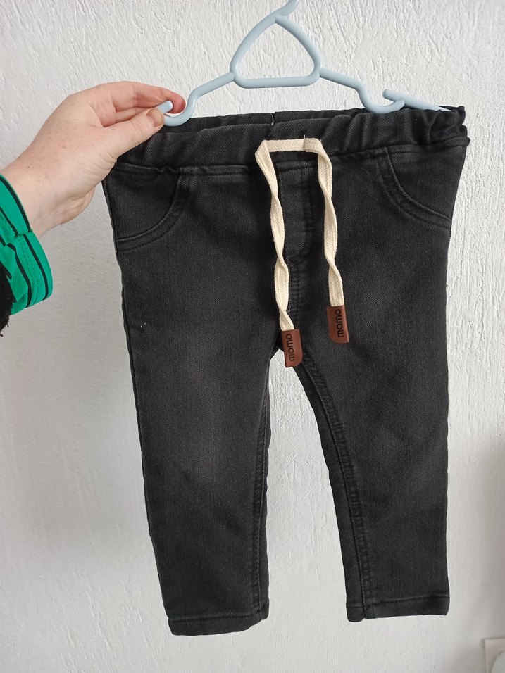 Gri renkte, yumuşak denim kumaştan yapılmış, elastik bel ve bağcıklı erkek çocuk için dar kesim pantolon. Rahat ve günlük tarzda. iade yoktur