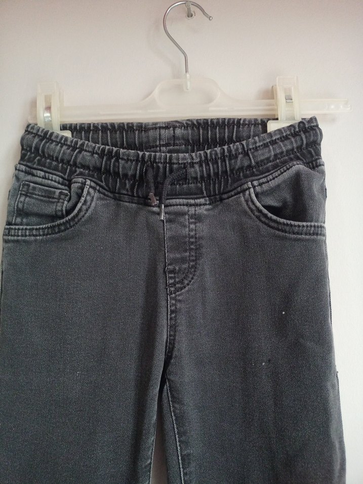 Gri kot kumaştan, elastik bel bantlı, bol kesim kız pantolonu. Desensiz, sade normcore tarzda tasarlanmıştır.