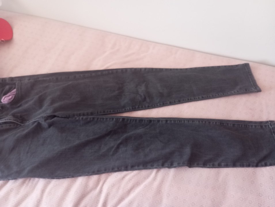 Elastik bel bantlı, normal midi boyda, gri renkli, dar kesim denim kadın jean. Rahat ve sade tasarım, günlük kullanıma uygun.