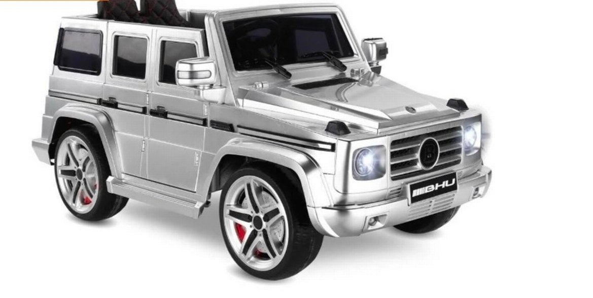 Gri renkli elektrikli binilebilir araba, gerçekçi tasarım detayları ve çalışan farlarla çocuklar için eğlenceli sürüş sunar. yanlarda ufak tefek çizikler var kullanımdan dolayı çok kullanılmadı 12 volt Akülü Jeep araba