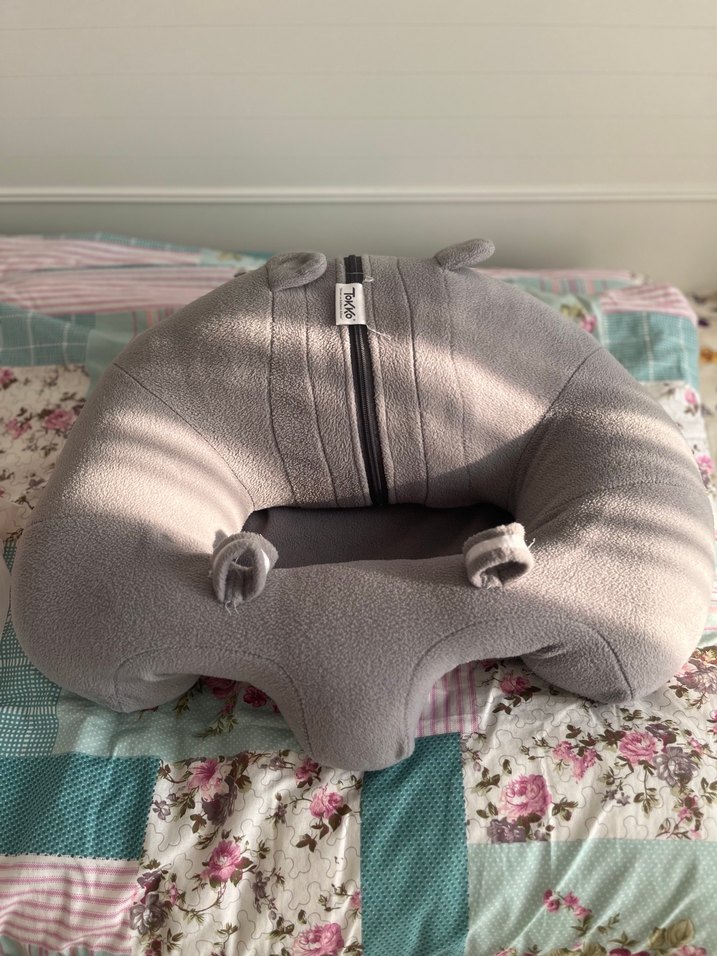 Yumuşak dokulu gri emzirme ve hamilelik destek yastığı, fermuar ve küçük detaylarla rahatlık sağlar. ️