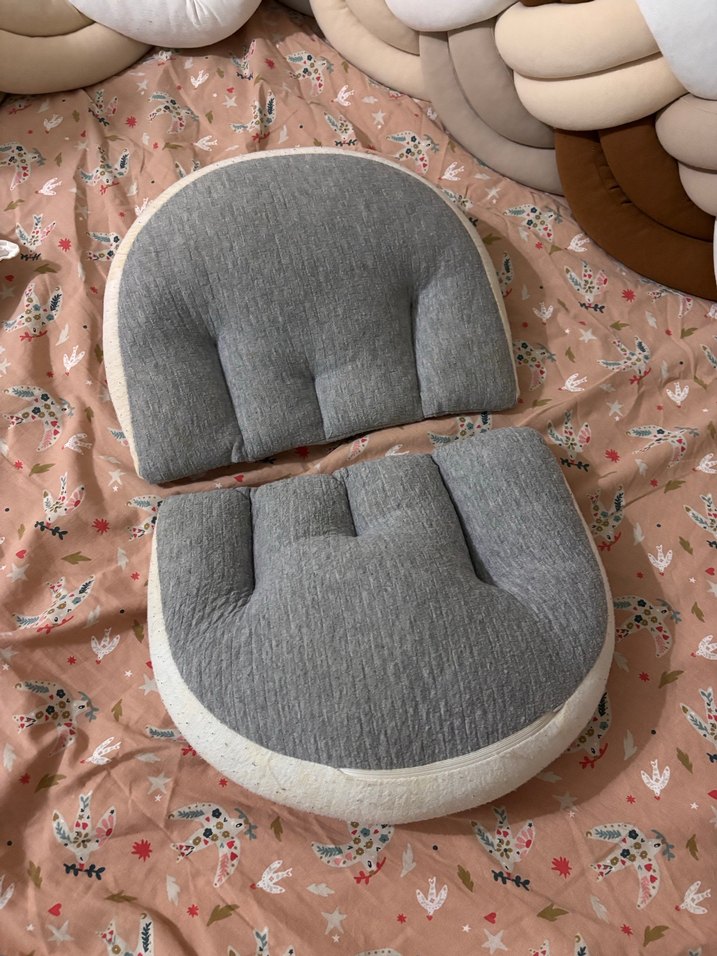Gri renkte, yumuşak kumaştan yapılmış emzirme ve hamilelik yastığı, konforlu destek sağlar. Tek renk ve sade tasarıma sahiptir. Kılıfları çıkartılıp yıkanabiliyor hafif sararmalar mevcutken