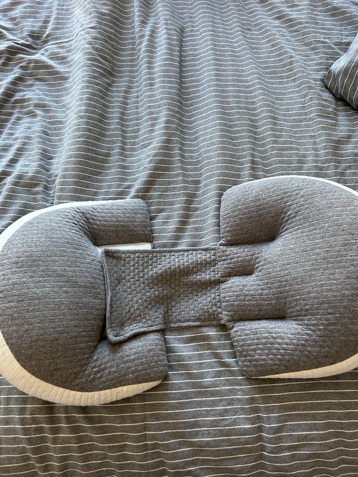 Gri renkte, yumuşak dokulu kumaştan ergonomik destek sağlayan emzirme ve hamilelik yastığı. ️ Çamaşır suyuyla yıkadığım için bir tarafında çamaşır suyu lekesi var Kir ya da herhangi bir leke değil çamaşır suyu lekesi kaldı rengi açıldı yani fazlalık başka kusurları fotoğrafta gözüküyor ihtiyaçtan satılık